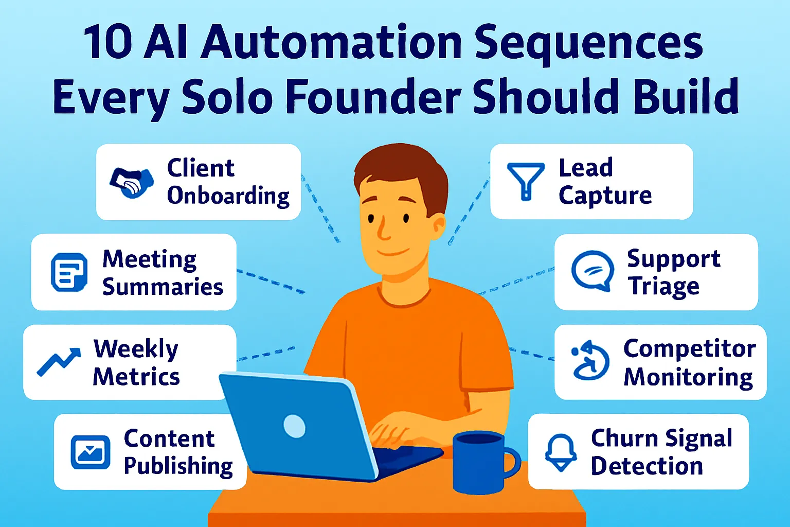 Build the top three first. They cover the highest-frequency, highest-consequence operations in most solo businesses. Sequences 4–6 come next. Sequences 7–10 are stage-dependent — build them when the function they automate is a confirmed bottleneck.