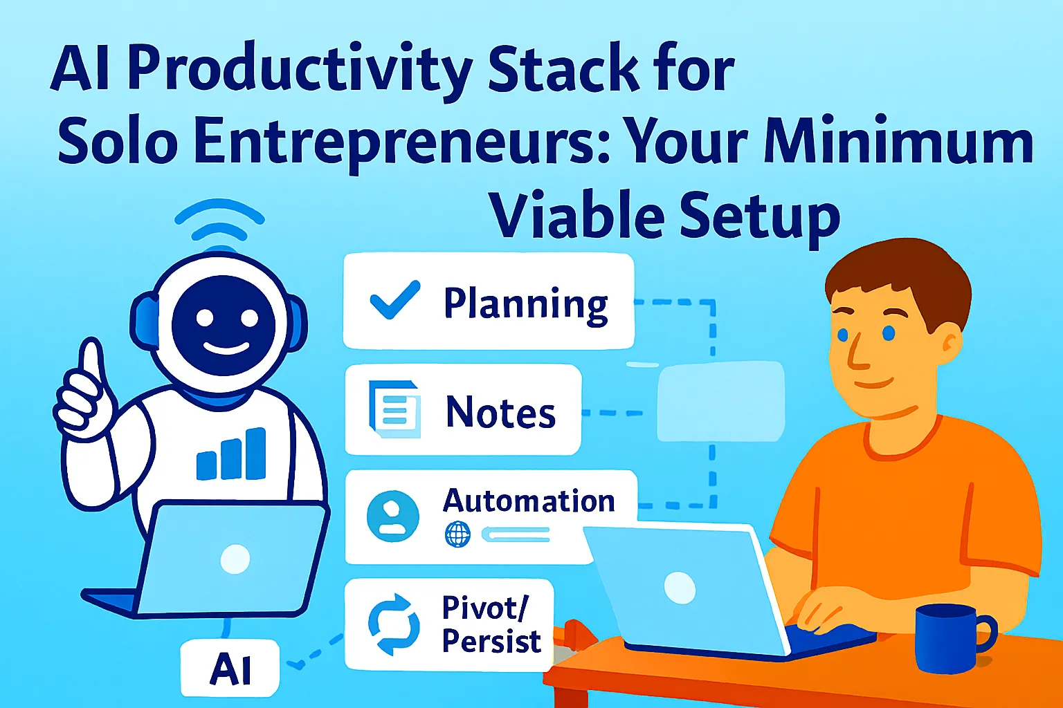 Every solo founder needs exactly five things from their productivity stack. Planning and tasks. Notes and knowledge. Automation. Communication. AI intelligence. One tool per function. Here's the MVS — minimum viable stack — that covers all five, integrates cleanly, and costs $20/month at base.